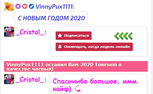 Нажав на кнопку, вы поднимете _Cristal_ на 1-е место главной страницы сайта на 60 секунд. В течение этого времени чат-комната модели станет максимально заметной и популярной! В чате появится оповещение о вашем действии, которое увидят модель и все другие пользователи чата. _Cristal_ непременно оценит такой знак внимания с вашей стороны и будет вам невероятно признательна!