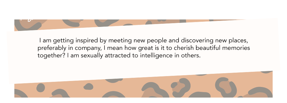 It is my firm belief that we must spoil ourselves and enjoy the luxurious things in life, with a bit of wildness whenever the opportunity presents itself. I love to spend time with gentlemen who value intellectual and emotional connections.