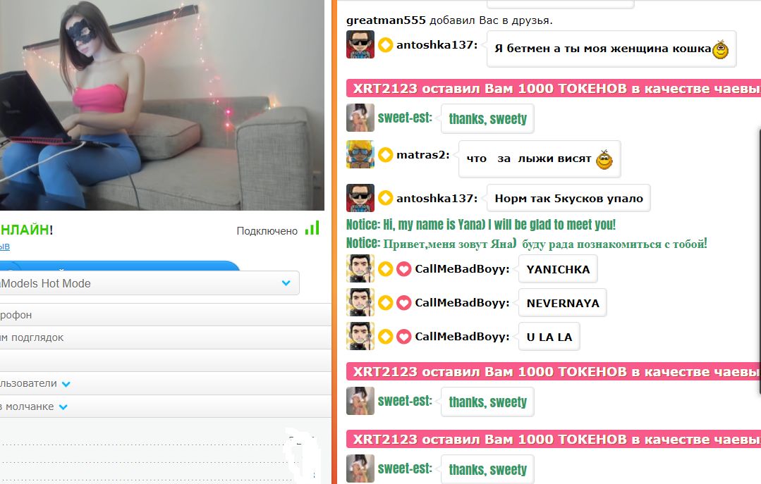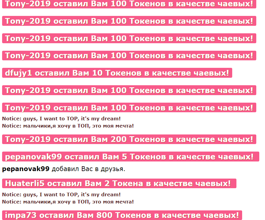 Нажав на кнопку, вы поднимете sweet-est на 1-е место главной страницы сайта на 60 секунд. В течение этого времени чат-комната модели станет максимально заметной и популярной! В чате появится оповещение о вашем действии, которое увидят модель и все другие пользователи чата. sweet-est непременно оценит такой знак внимания с вашей стороны и будет вам невероятно признательна!